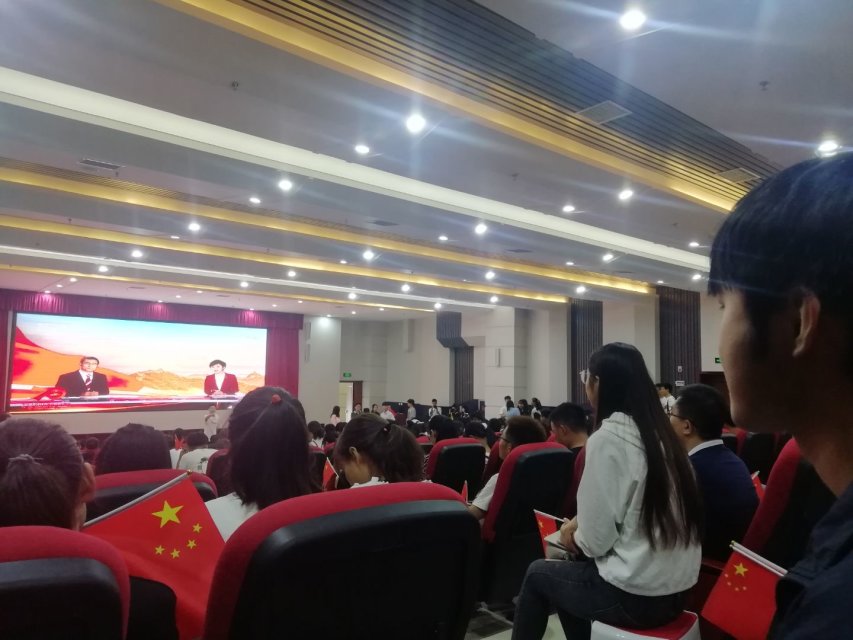为庆祝新中国成立70周年,激发全体师生的爱国热情,2019年10月1日上午10时,九游会官方网站全体师生观看70周年阅兵直播。由于直播在国庆放假期间,所以全体师生在公交车上、在家中、在学校等地点以多种方式自行观看阅兵直播。